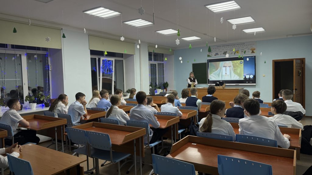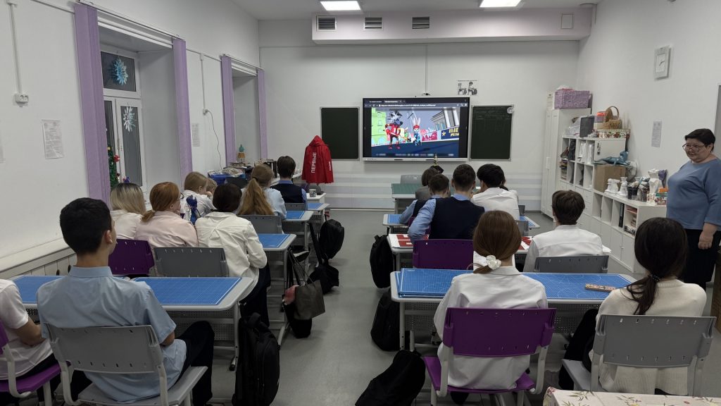 По традиции учебная неделя началась с гимна России и тематического занятия «Разговоры о важном».