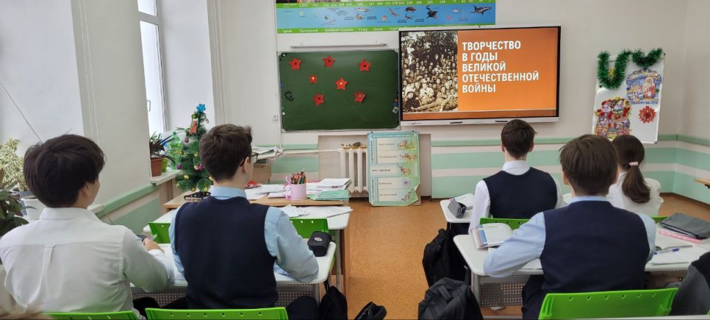 В завершении Года Защитника Отечества юнармейцы лицея приняли участие в тематических занятиях «Устами Победы» — занятиях, посвящённых произведениям о Великой Отечественной войне. Они посмотрели презентацию «Творчество в годы Великой Отечественной войны», в ходе которой услышали песни и стихи того периода и отрывок из Седьмой (Ленинградской) симфонии Д. Шостаковича и короткометражный фильм «Устами Победы.