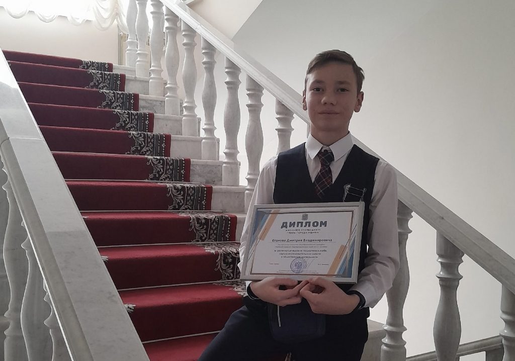 Также состоялось вручение сертификатов на именную стипендию Администрации города Ишима. Его получил Еганов Дмитрий, ученик 7 класса.
